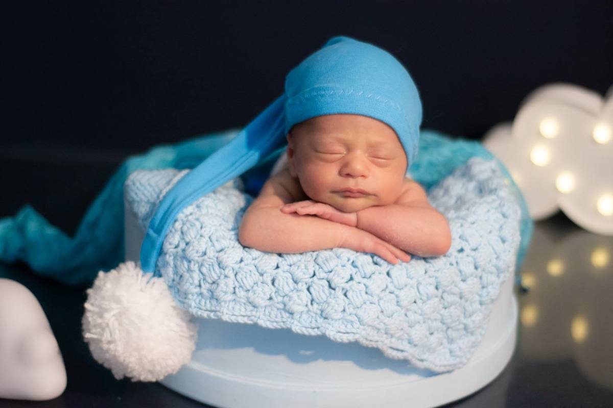 A sessão de fotos newborn e realizada com bebes recém-nascidos de 5 a 12 dias de vida, nesta fase todas as características do bebê como sono e flexibilidade são muito mais favoráveis para o posicionamento das poses fofas que usamos e mais confortáveis para ele.